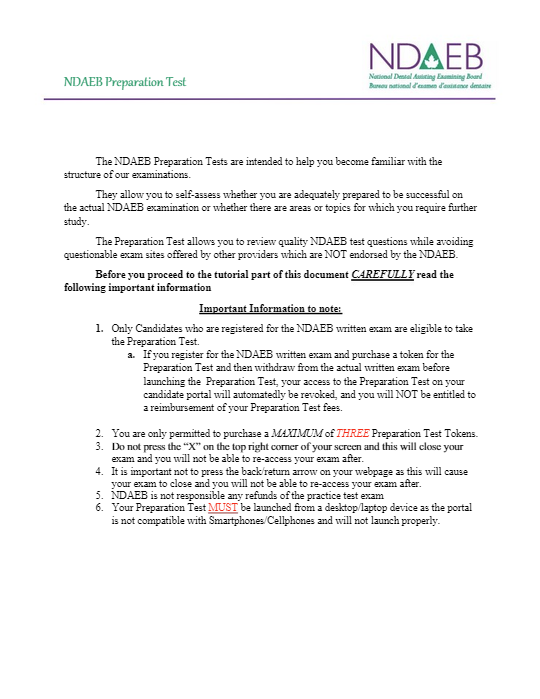Preparation Test Instructions